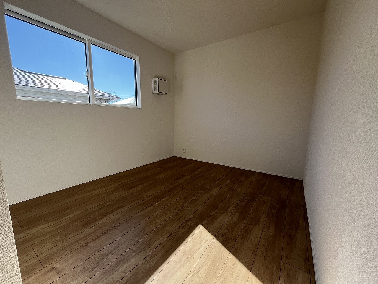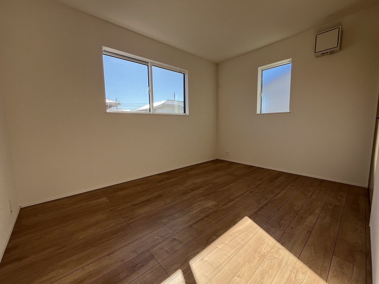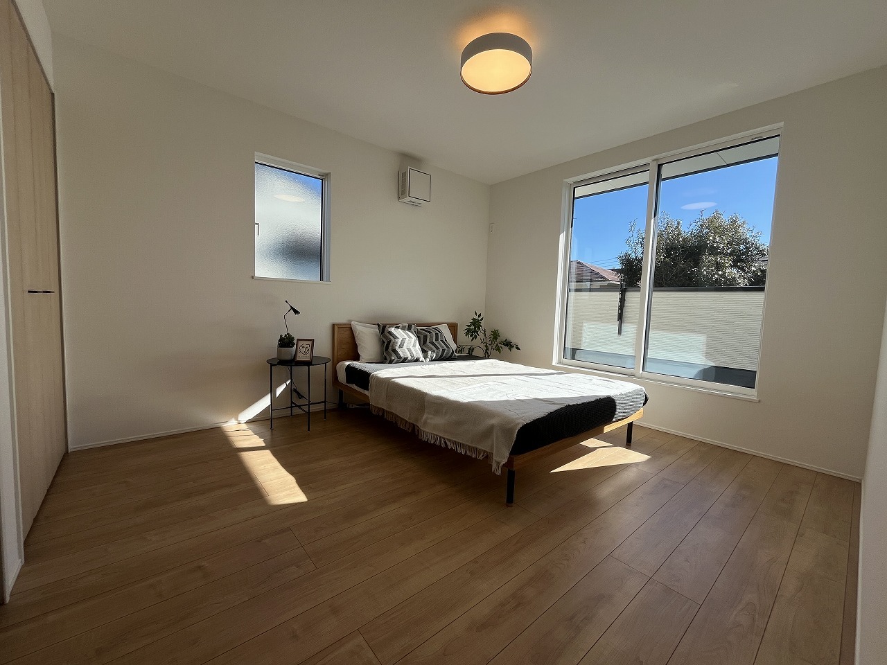 7.0帖洋室 南向き二面採光日当たり良好です。寛ぎの時間を紡ぎだす主寝室。大型ベッドを置いても余裕。