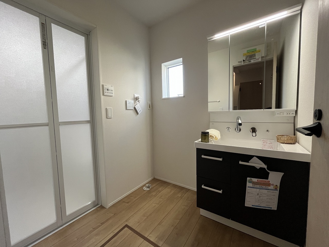 三面鏡にハンドシャワー付き、使いやすい洗面台