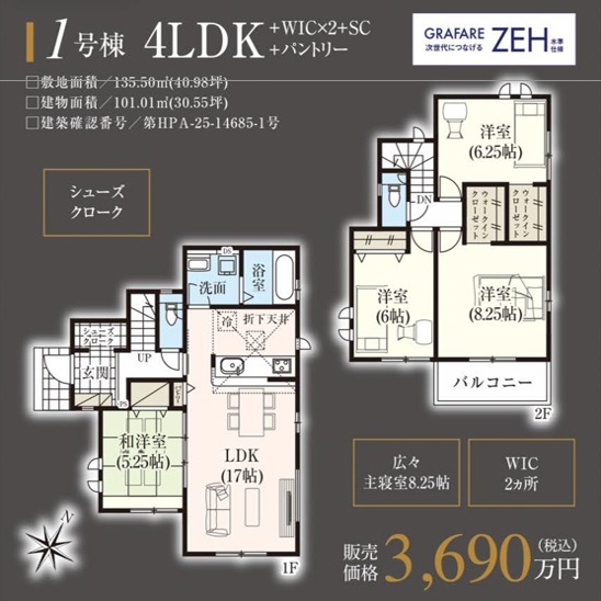 | 建物面積 | 95.22m² ~ 101.85m² | ||