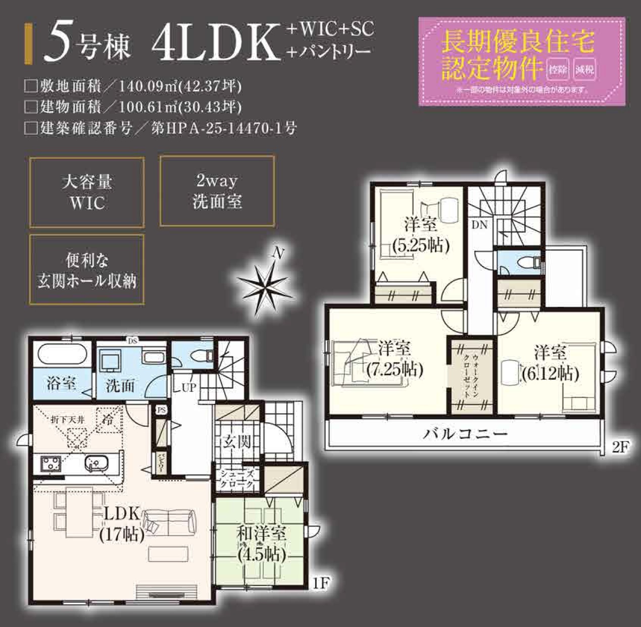 | 建築確認番号 | 第HPA-2514670-1号、他、他 | 駐車スペース | 2台可(カースペース) |