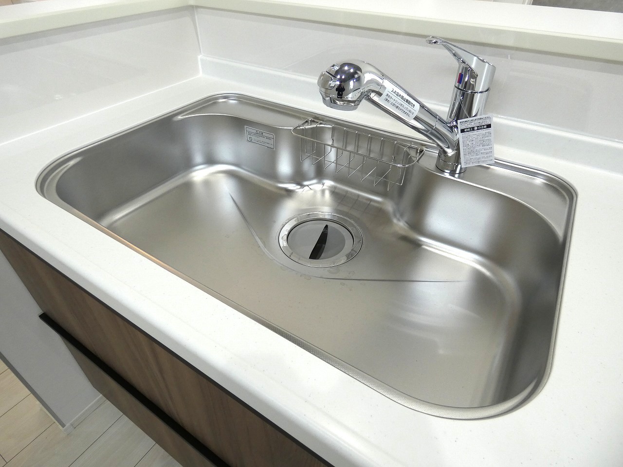 ~同形状・同仕様~ ■傷や汚れが付きにくい全面エンボス加工シンク。水はねの音や食器が当たる音を大幅に軽減する静音仕様です。