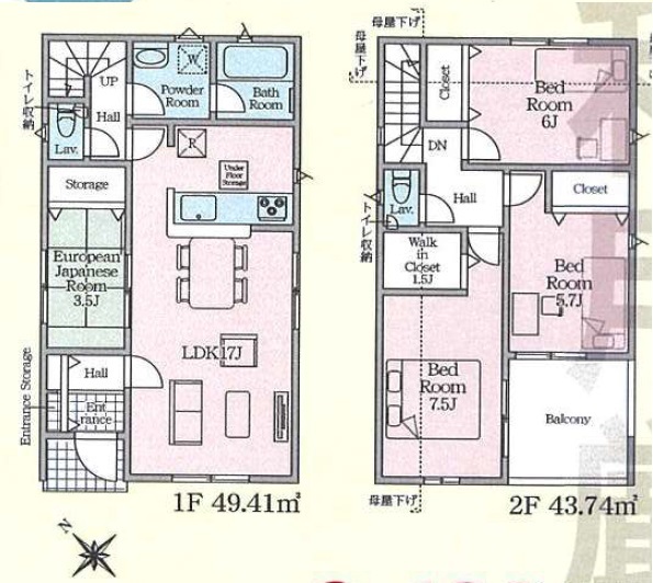 | 間取 | 4LDK (LDK17帖、洋室7.5帖、洋室6帖、洋室5.7帖、和室3.5帖) | ||