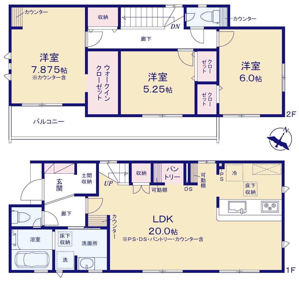 | 間取 | 3LDK (LDK20.0帖、洋室7.875帖、洋室6.0帖、洋室5.25帖) | ||