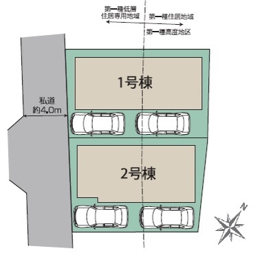 | 用途地域 | 第一種低層住居専用地域/第一種住居地域 | 建ぺい率 | 50%/60% |